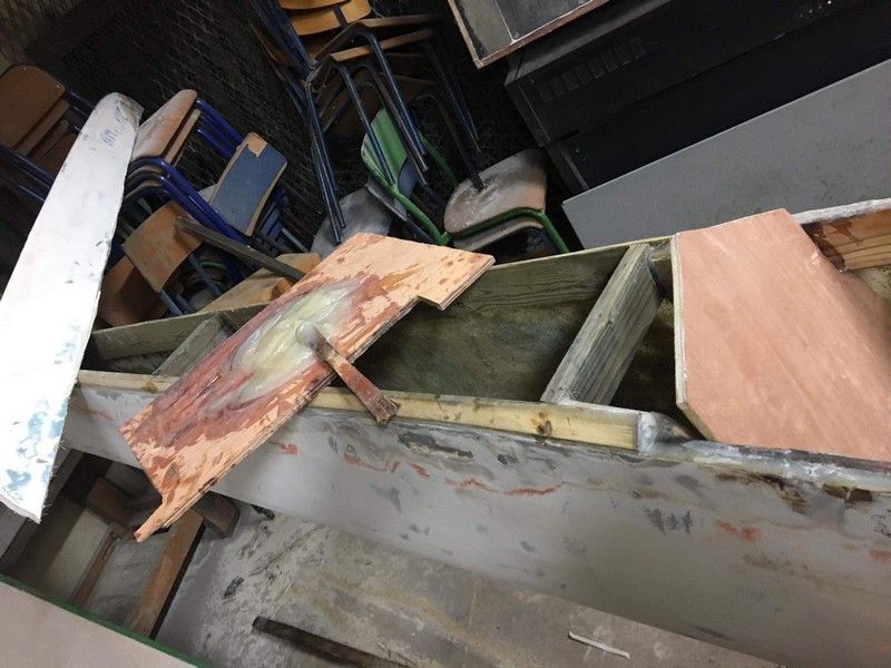 La nouvelle pirogue a été complètement refaite et elle est en cours de finition. C'est un travail énorme et de longue haleine, en grande partie réalisé par Heimana. Si le collège a financé les matières premières, il faut bien reconnaitre que cette réalisation n'aurait pas été possible sans le talent de nos agents.