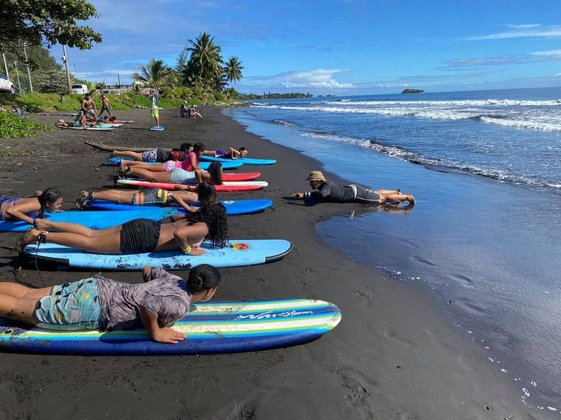Grands vainqueurs du concours de collecte de piles usagées, les élèves de 6èF ont eu la joie d'être récompensés par une journée d'initiation au surf à Papenoo le mardi 08 Juin 2021.Quant aux 5èB qui les accompagnaient, cette sortie venait récompenser un an de travail sérieux au collège.