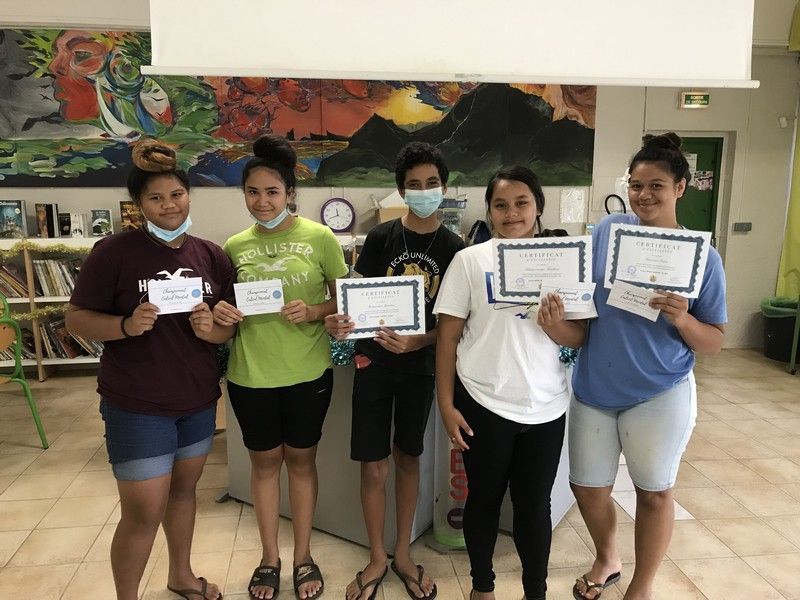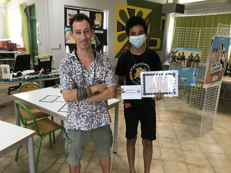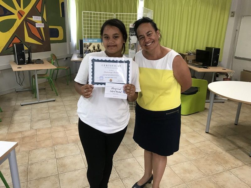 A l'issue de l'épreuve, parmi les 13 candidats présents, cinq élèves ont su tirer leur épingle du jeu. Il s'agit de Grâce TAUMATA en 3ème C (1ère), Tevahine TEKAKIOTERAGI en 3ème D (2ème), Joachim BERNARDINO en 3ème C (3ème), Cindy TUUHIA en 3ème B (4ème) et Belle-Ange TAVAE en 3ème C (5ème). FELICITATIONS !