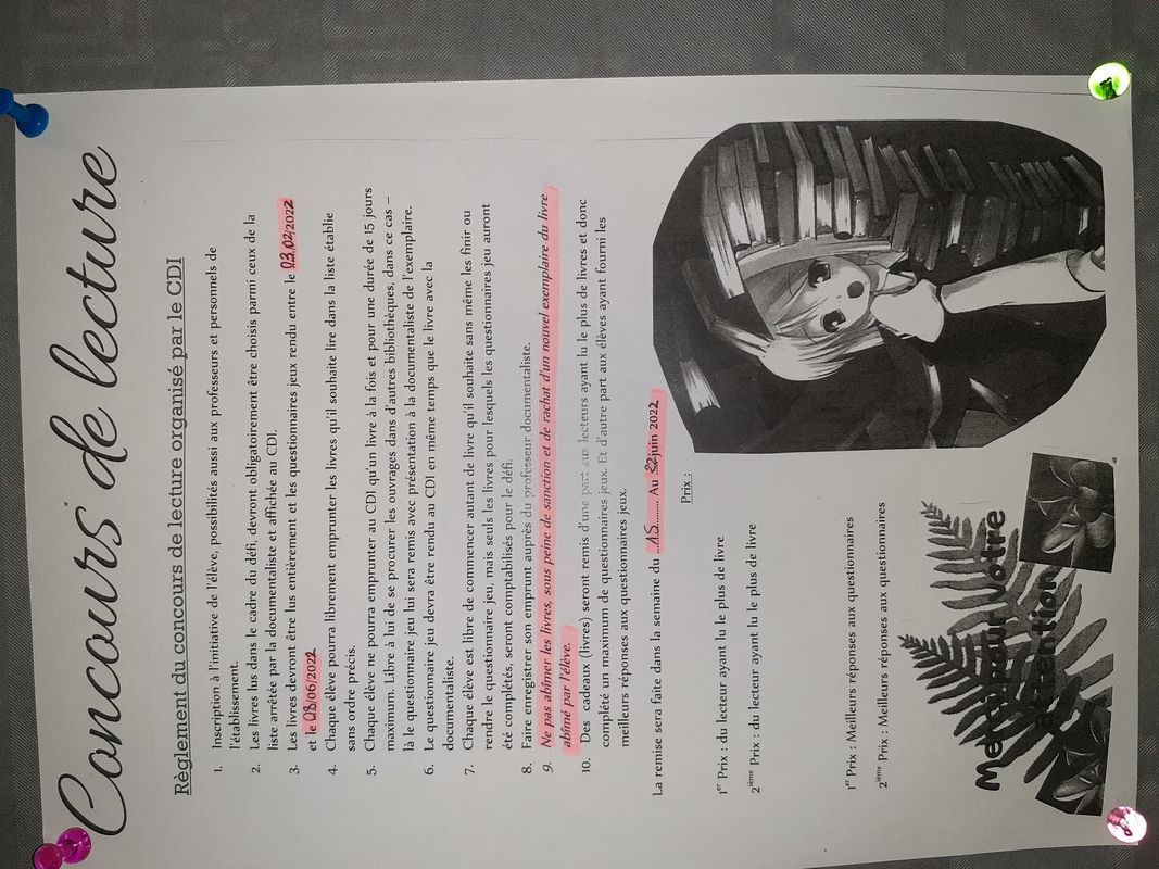 Le concours de lecture a commencé depuis mercredi dernier le 03/02 et finira le 08 juin 2022.