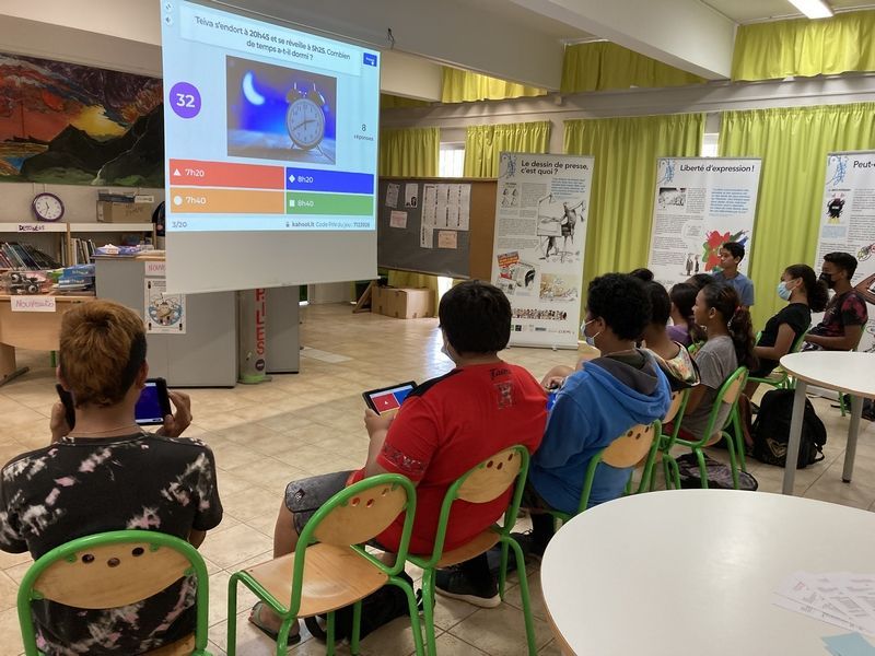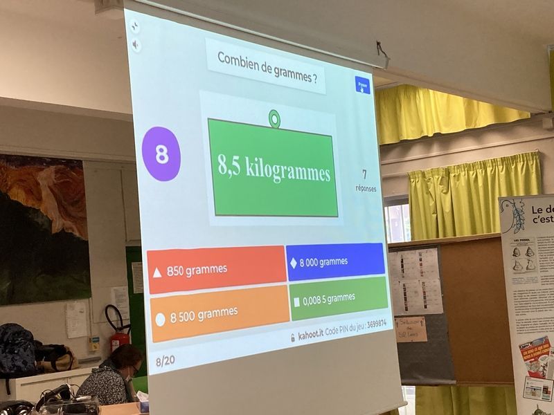 Le questionnaire de 20 questions proposé a été élaboré sur la plateforme Kahoot! puis vidéoprojeté aux élèves.