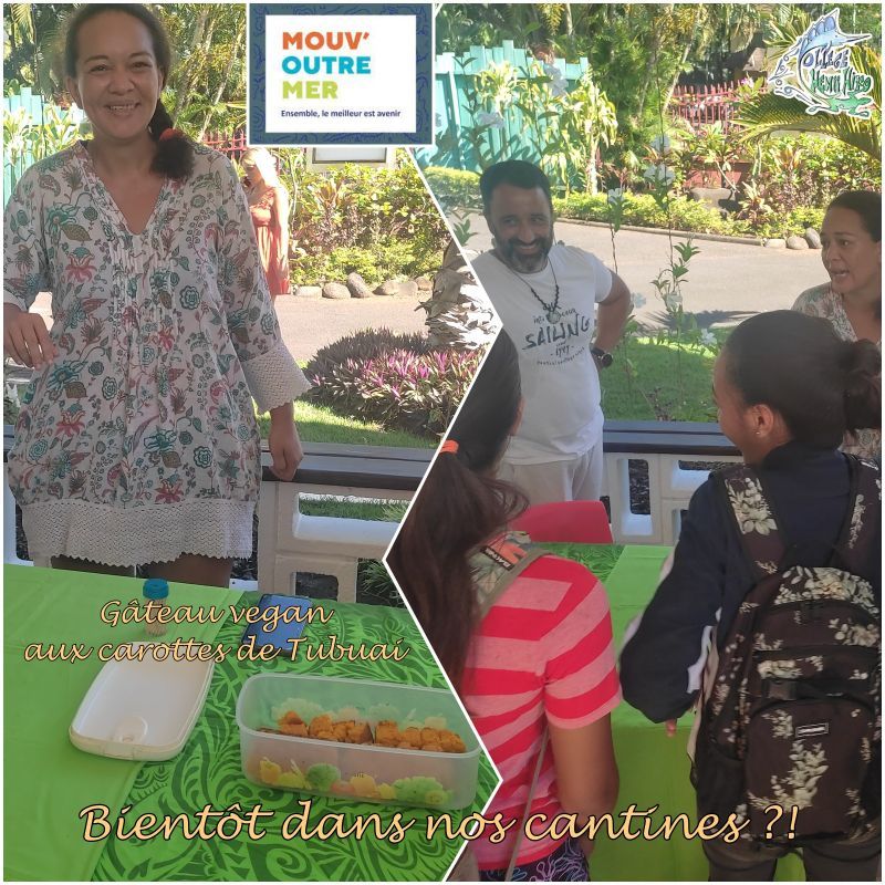 Privilégier la consommation de produits de locaux et les introduire dans les cantines scolaires. Les élèves ont dégusté un gâteau végan aux carottes de Tubuai. La cheffe a remporté le 1er prix au concours de la foire agricole avec cette recette.