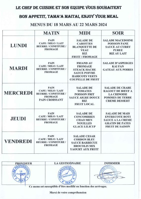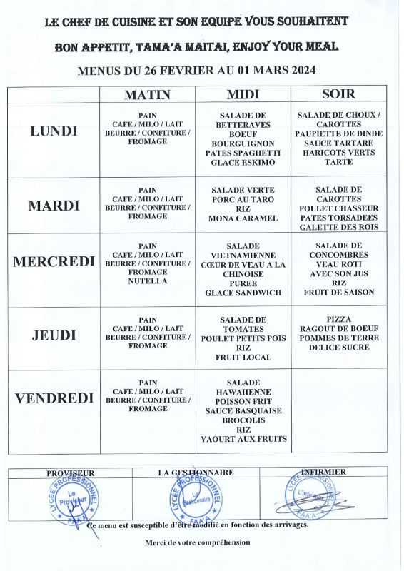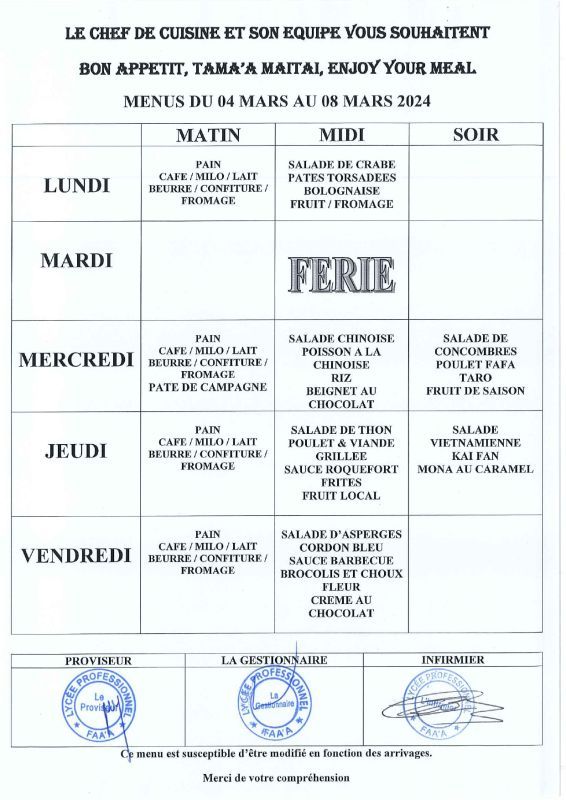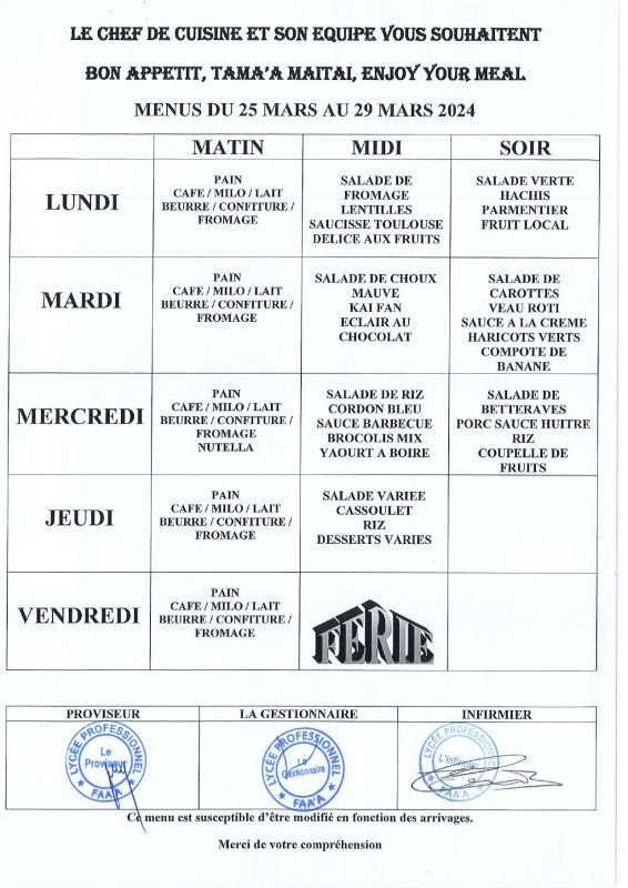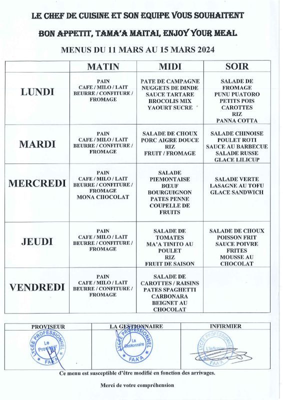 • Menus du 24 février au 28 mars 2025