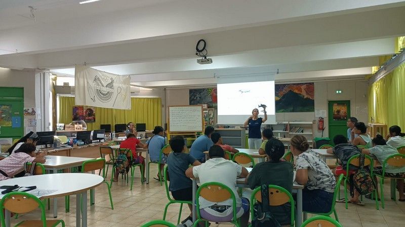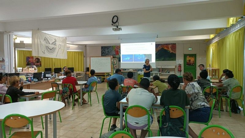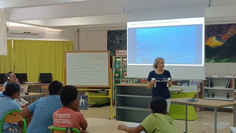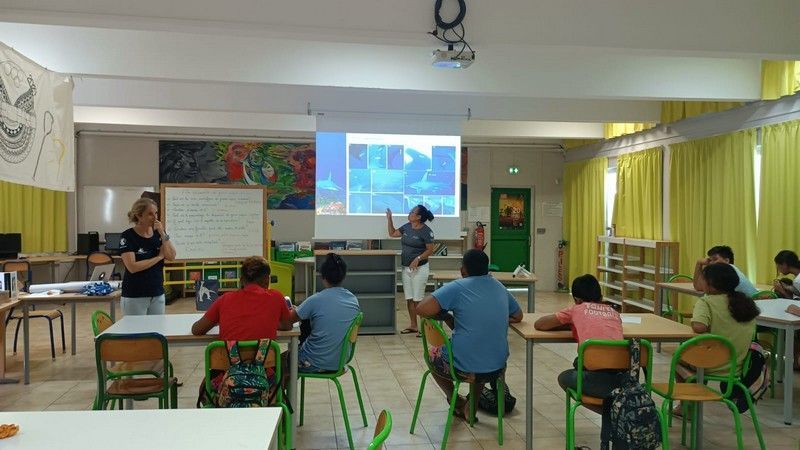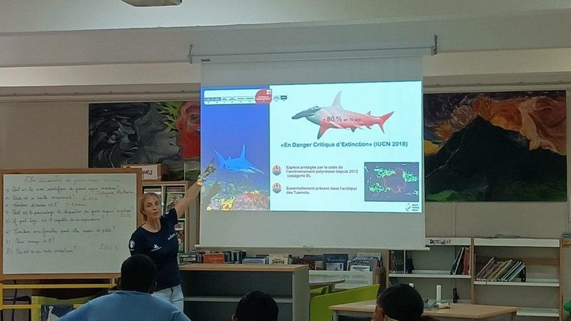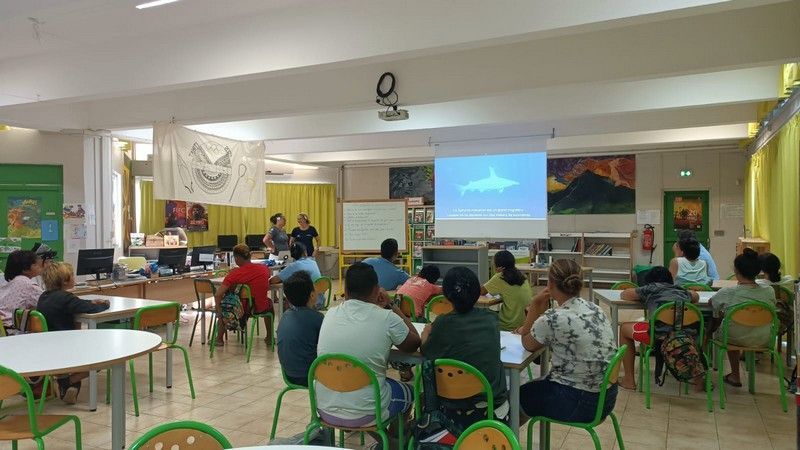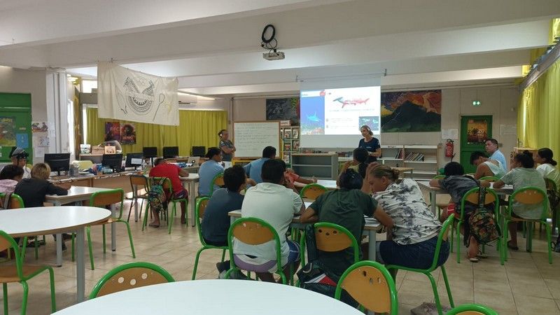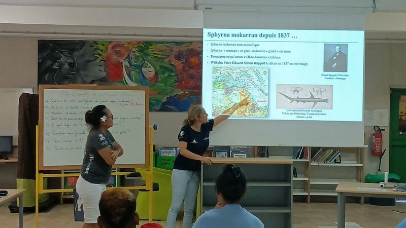 Audrey et Béatrice ont présenté aux élèves le projet Tamataroa qui, lancé en 2023 et prévu jusqu’en 2026, est une initiative de conservation dédiée au grand requin marteau en Polynésie française et vise à améliorer les connaissances scientifiques sur cette espèce.