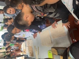 Jeudi 19 octobre, nous nous sommes rendus à la Maison de la Culture pour rencontrer Mickey MOTO, l’auteure illustratrice de la BD Samo. Elle nous a donné des activités de dessin à faire. Elle a aussi dédicacé notre BD. Ensuite, nous avons regardé la fabrication de papier à partir des fibres de bananier. Et enfin, on a assisté à la lecture d’un album qui parlait d’un poulpe. Nous avons illustré cette histoire.