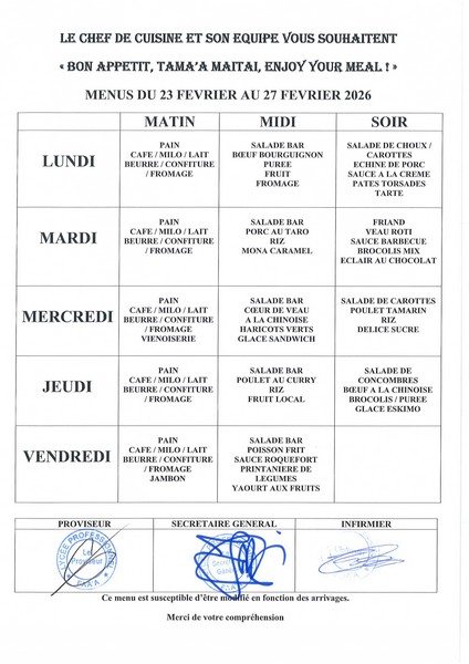Menus du 23 fevrier au 27 mars 2026 27-02-2026 par Administrateur Menus du 23 au 27 fevrierMenus du 2 au 6 marsMenus du 9 au 13 marsMenus du 16 au 21 marsMenus du 23 au 27 mars