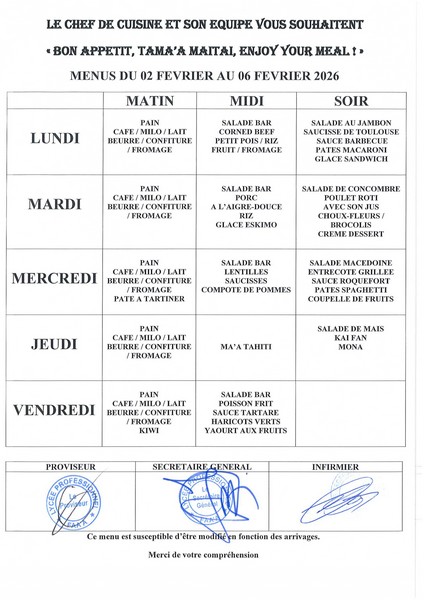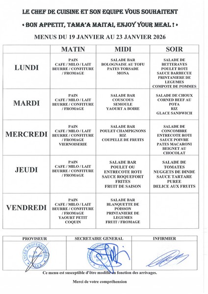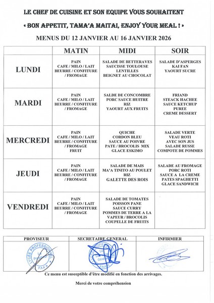 Menus du 12 janvier au 13 février 2026 12-01-2026 par Administrateur Menus du 12 au 16 janvierMenus du 19 au 23 janvierMenus du 26 au 30 janvierMenus du 2 au 6 fevrierMenus du 9 au 13 fevrier